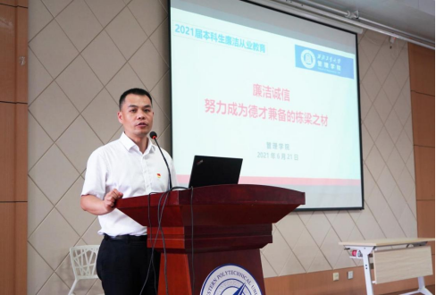 2021届本科毕业生授课,2017级本科生辅导员封华主持活动。本次授课旨在敦促毕业生坚定理想信念、树立爱国爱校情怀,走好今后生涯的第一步。