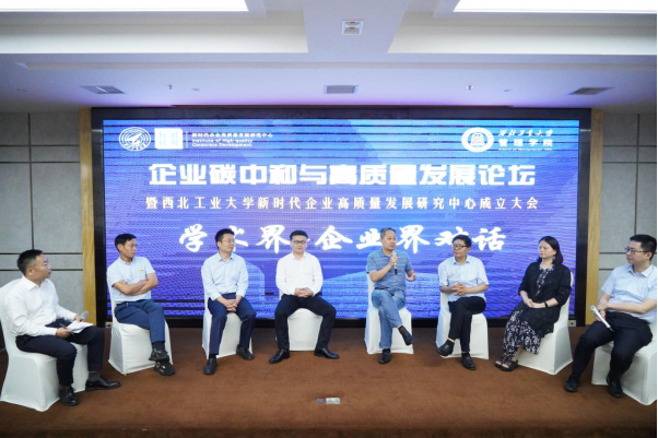 、西北工业大学学科建设办公室、西北工业大学新时代企业高质量发展研究中心承办,论坛主题为“企业碳中和与高质量发展”。来自南开大学、上海交通大学、南京大学等国内高校的顶尖学者,以及来自中国联合水泥集团有限公司、陕西龙门钢铁有限责任公司、国网新能源云技术有限公司、中国东方航空集团有限公司、大唐韩城第二发电有限责任公司、隆基绿能科技股份有限公司、南方周末中国企业社会责任研究中心等知名企业及媒体的高管齐聚一堂,共同探讨“30-60”目标下企业碳中和与高质量发展的理论创新和企业实践。